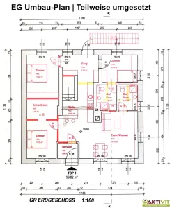 Die Wohneinheit mit 45 m² wurde bereits saniert, die Einheit mit 40 m² wird derzeit umgebaut und saniert.